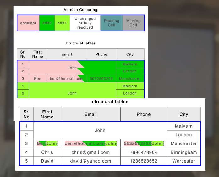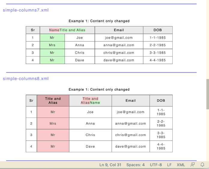 XML Merge (11.0.0) and DITA Merge (7.0.0) introduce an enhanced table comparison.