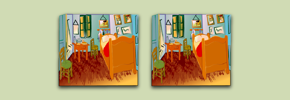 The two images are saved as SVG – Scalable Vector Graphics – an XML format for creating diagrams and other images. Objects in the picture are defined using lines, polygons and gradient fills grouped together as a single item. To create the competition, we simply edited the original XML image to delete some of the objects and create new ones.