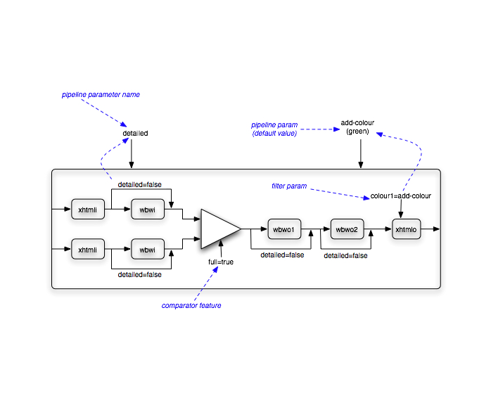 Define pipelines and fine-tune the comparison process with various configuration options for output format, parser features, and more.