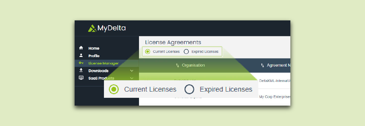 In this release of MyDelta you can now see historic licenses, with a simple toggle button at the top of the License Agreements table in the License Manager section. The default is ‘Current Licenses’ and shows you the currently issued licenses as MyDelta has always done. Changing to ‘Expired Licenses’ shows a history of older licenses associated with your agreement.
