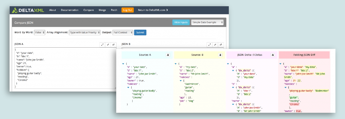 We also have documentation for our new JSON Delta format , and the features of JSON Compare itself.