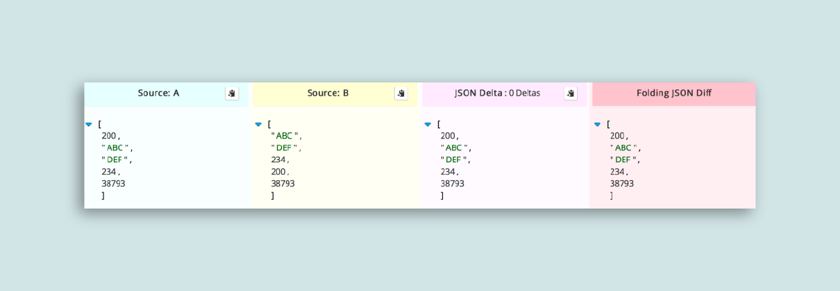 We have two new features for JSON Compare . The first is a new “Orderless” option for Array Alignment, documented here . This example below shows two arrays containing the same data, but in a different order. Using Orderless Array Alignment, we can see there are no changes reported*: