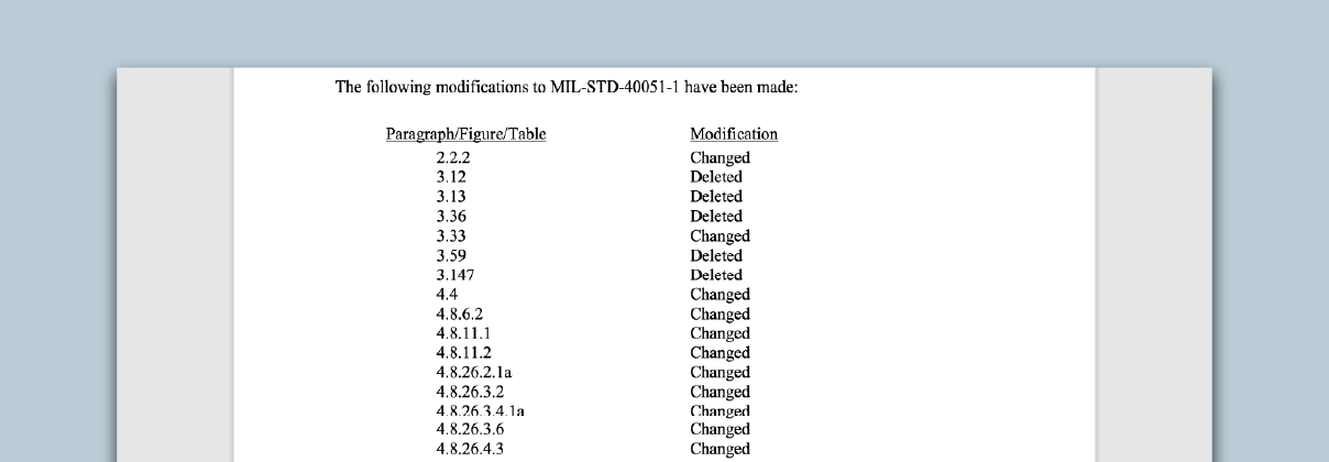 Department Of Defense Standard Practice Preparation Of Digital Technical Information For Interactive Electronic Technical Manuals (IETMS) pg. 3, a list of changes present